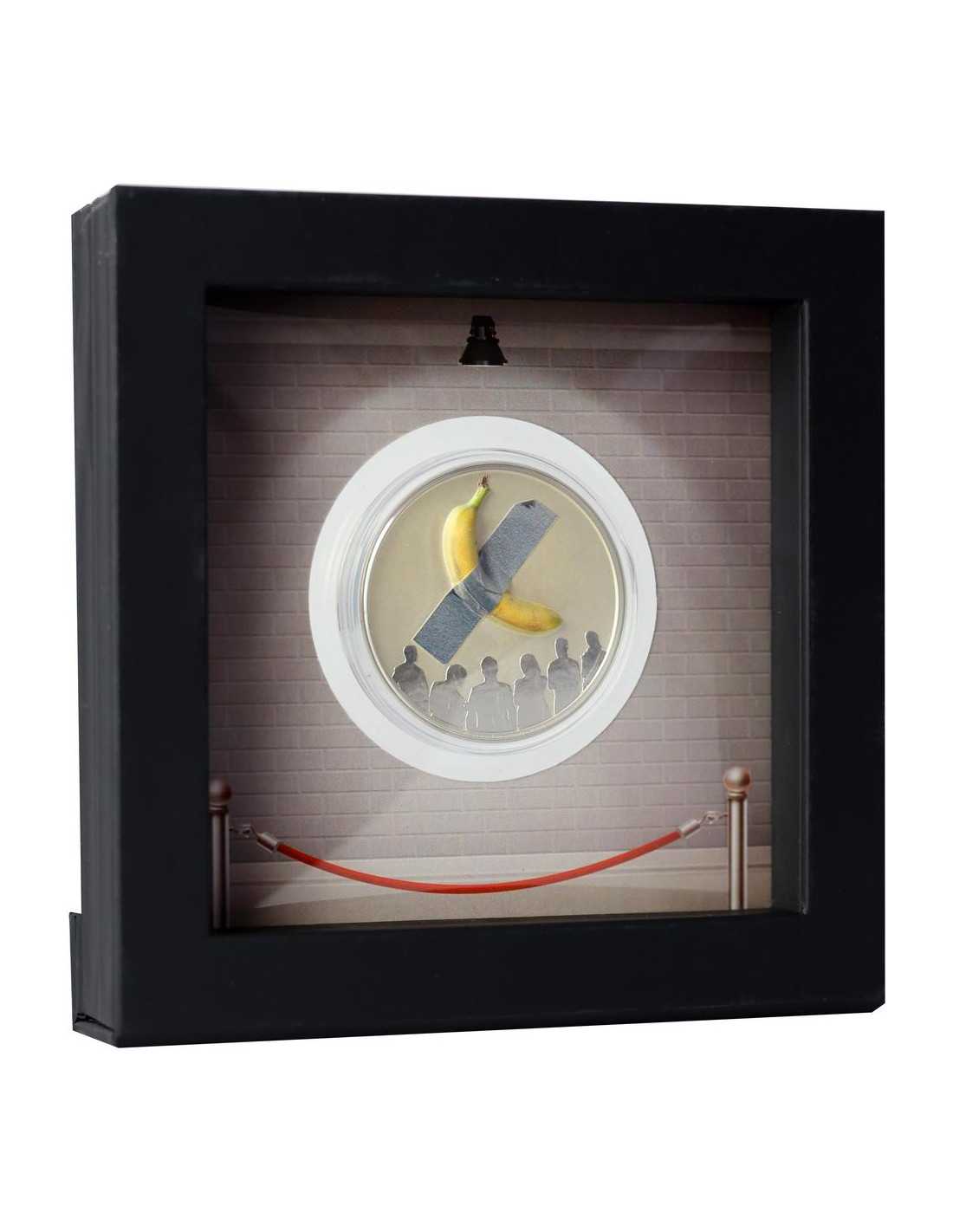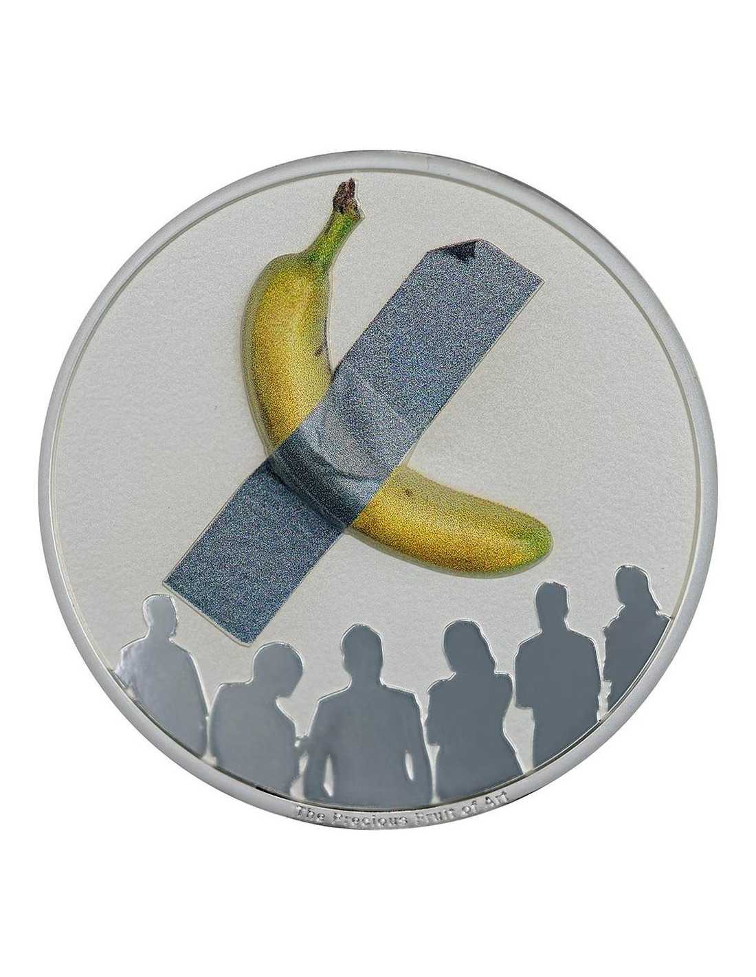 This funny 2 Oz Silver coin is the first in the new "Art is Art" series and pays tribute to "Comedian" a controversial artwork from Maurizio Cattelan. The coin has a nice colored design with a proof quality and comes in a themed case, along with its Certificate of Authenticity.