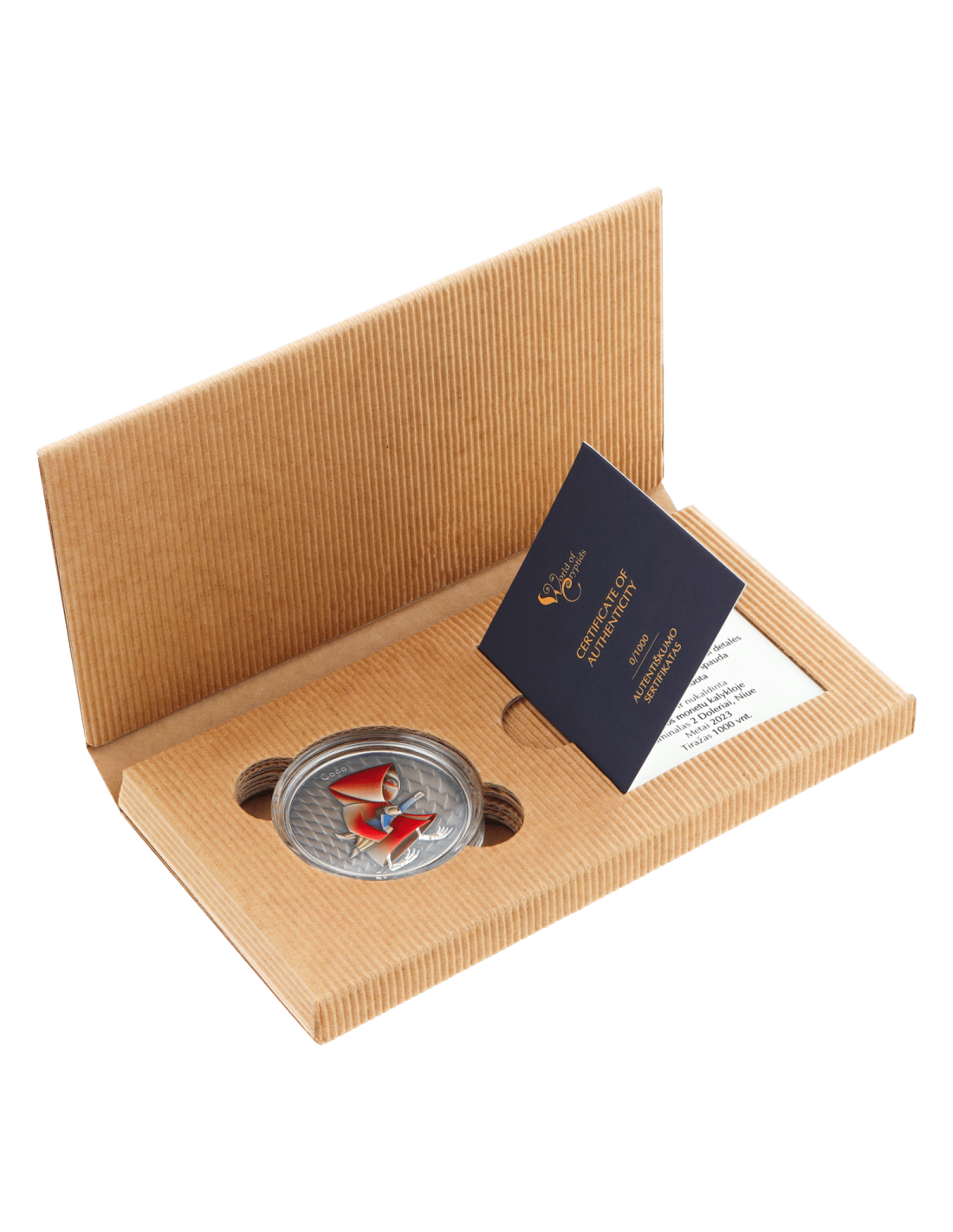 This beautiful 1 Oz Silver coin is the the new coin from the "World of Cryptids" serie and is dedicated to Coco. The coin has Antique Finish quality with a vintage printing coloration. It comes in its storage box along with its Certificate of Authenticity.