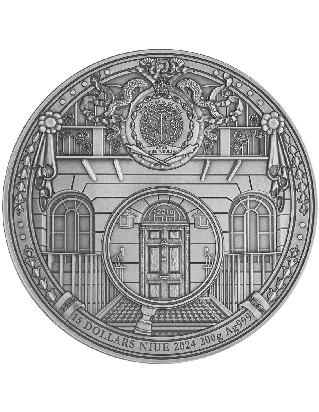 Esta bonita moneda de plata de 200 g conmemora Las aventuras de Sherlock Holmes y representa una famosa escena de "Estudio en escarlata". La moneda tiene un bonito acabado antiguo diseñado con alto relieve e impresión UV. Se entrega en su estuche, junto con su Certificado de Autenticidad.