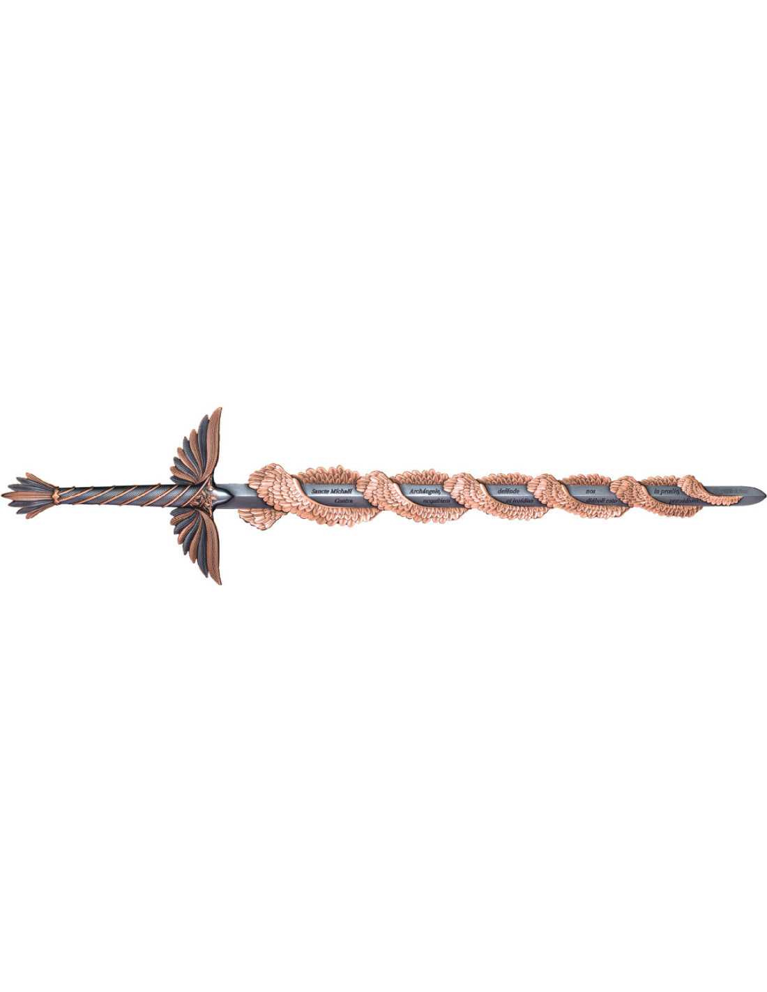 Cette barre en argent de 2.5 onces en forme d'Epée de Saint Michel est dotée d'un superbe design haut relief et d'une finition Antique avec de très jolies gravures et un plaquage en or rose. Elle est livrée dans sa capsule