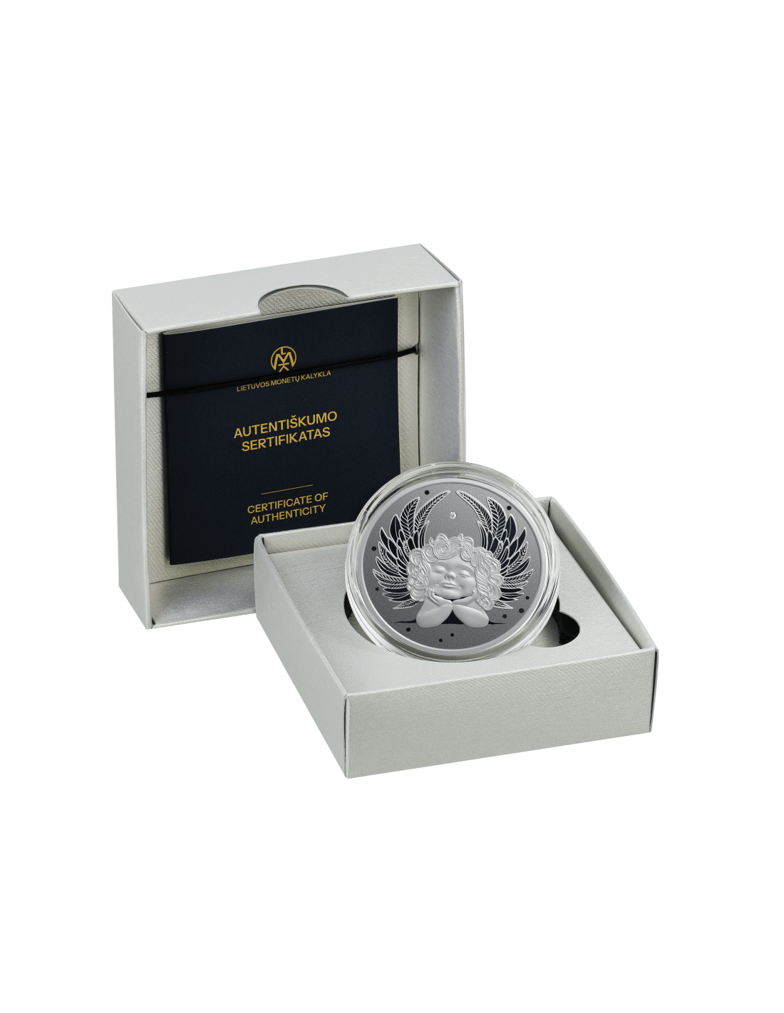 Cette superbe pièce d'une once en argent montre un petit ange, apportant douceur et calme de par son visage souriant et son air rassurant. Cette pièce bénéficie d'un très joli design avec une finition proof et un insert en diamant véritable. Elle est livrée dans sa boite thématique, accompagnée de son Certificat d'Authenticité.