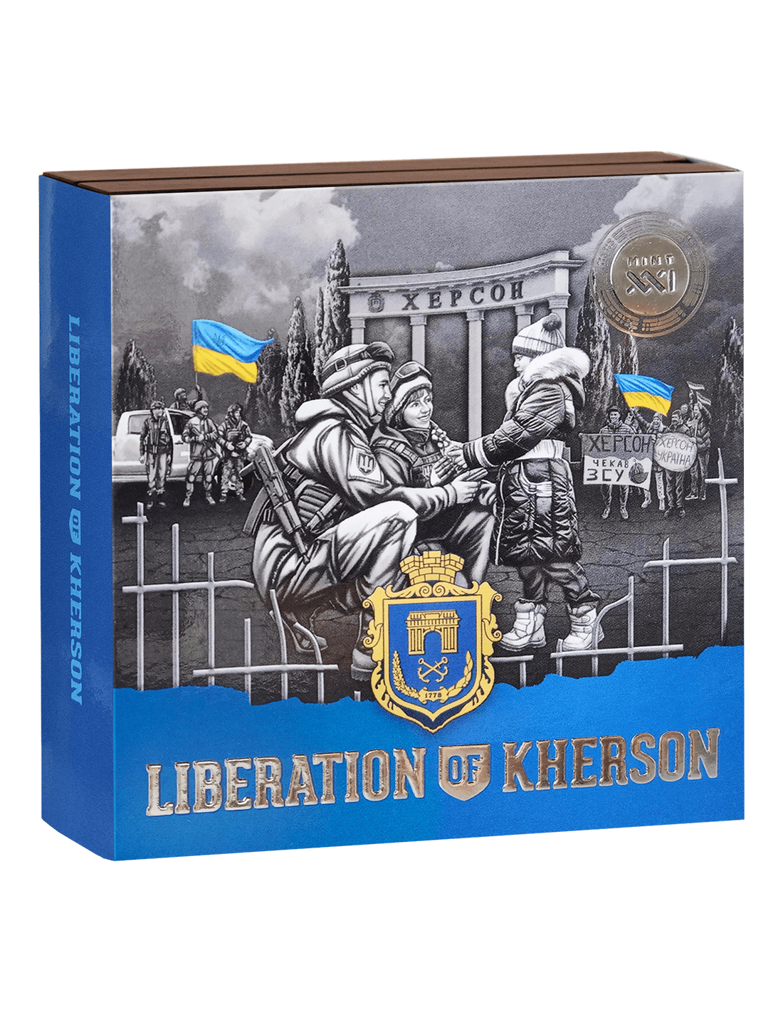 Questa straordinaria moneta d'argento da 2 once commemora la liberazione di Kherson nel novembre 2022. La moneta ha una qualità di finitura antica con alto rilievo e viene fornita in un cofanetto a tema, insieme al suo certificato di autenticità.