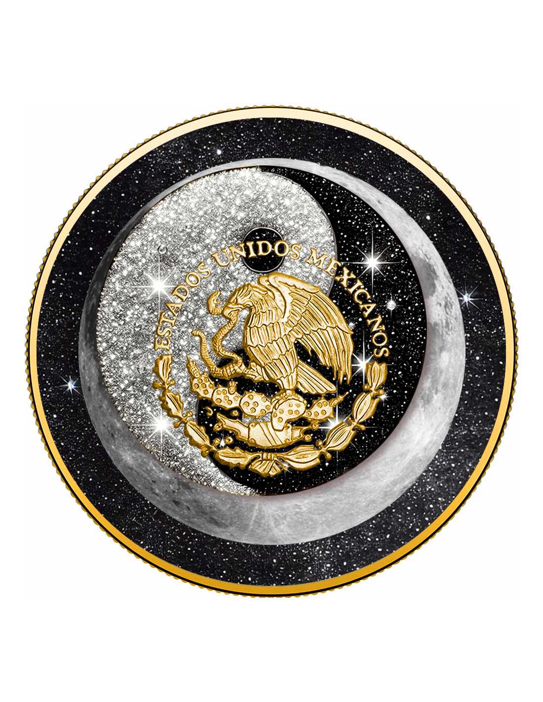 Questa bellissima moneta d'argento da 1 Oz presenta una libertad messicana olografica con il simbolo Yin e Yang. La moneta ha un grande design con placcatura in oro e polvere di diamante e viene fornita nel suo astuccio, insieme al suo Certificato di Autenticità.