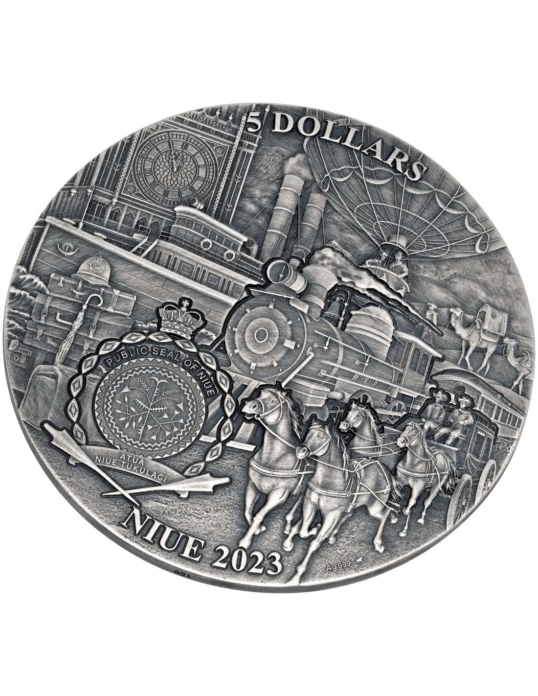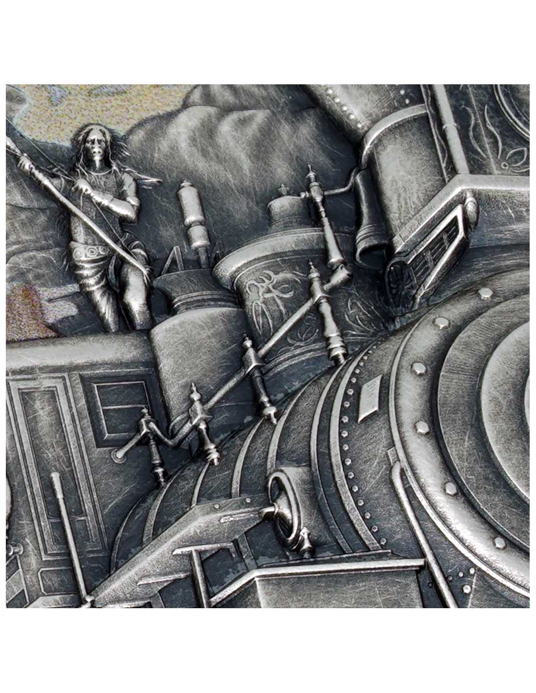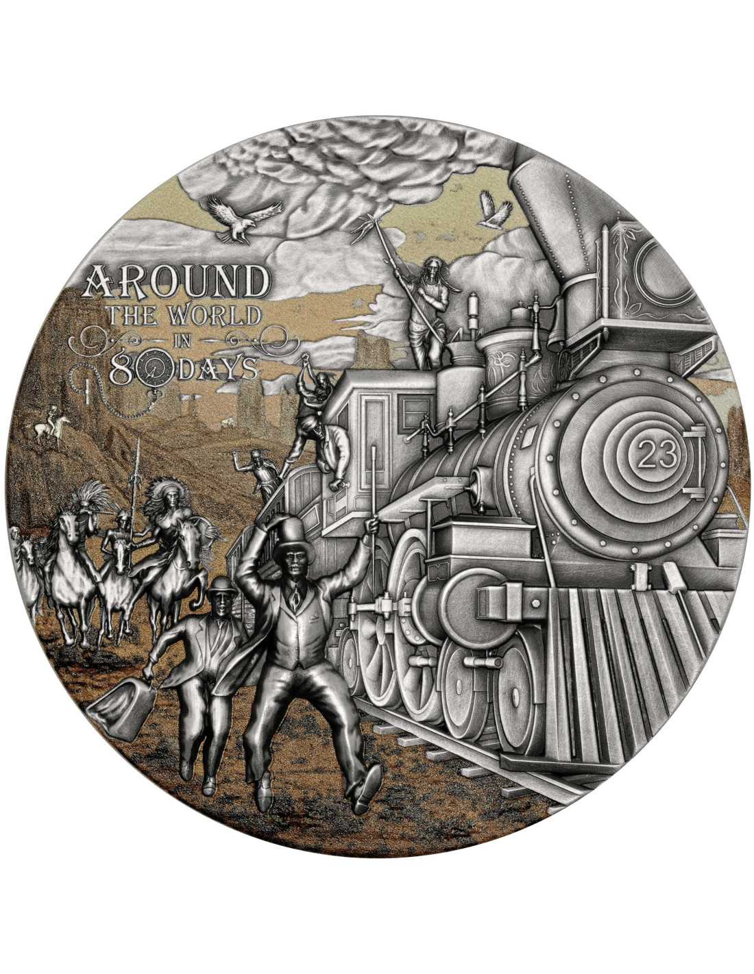 Questa bellissima moneta d'argento da 3 once è dedicata alla principale opera letteraria dello scrittore francese Jules Verne: Il giro del mondo in ottanta giorni. In questa edizione il Viaggio in treno La moneta presenta un bellissimo altorilievo, una colorazione selettiva e una qualità di finitura antica e viene fornita in un cofanetto, insieme al suo Certificato di Autenticità.