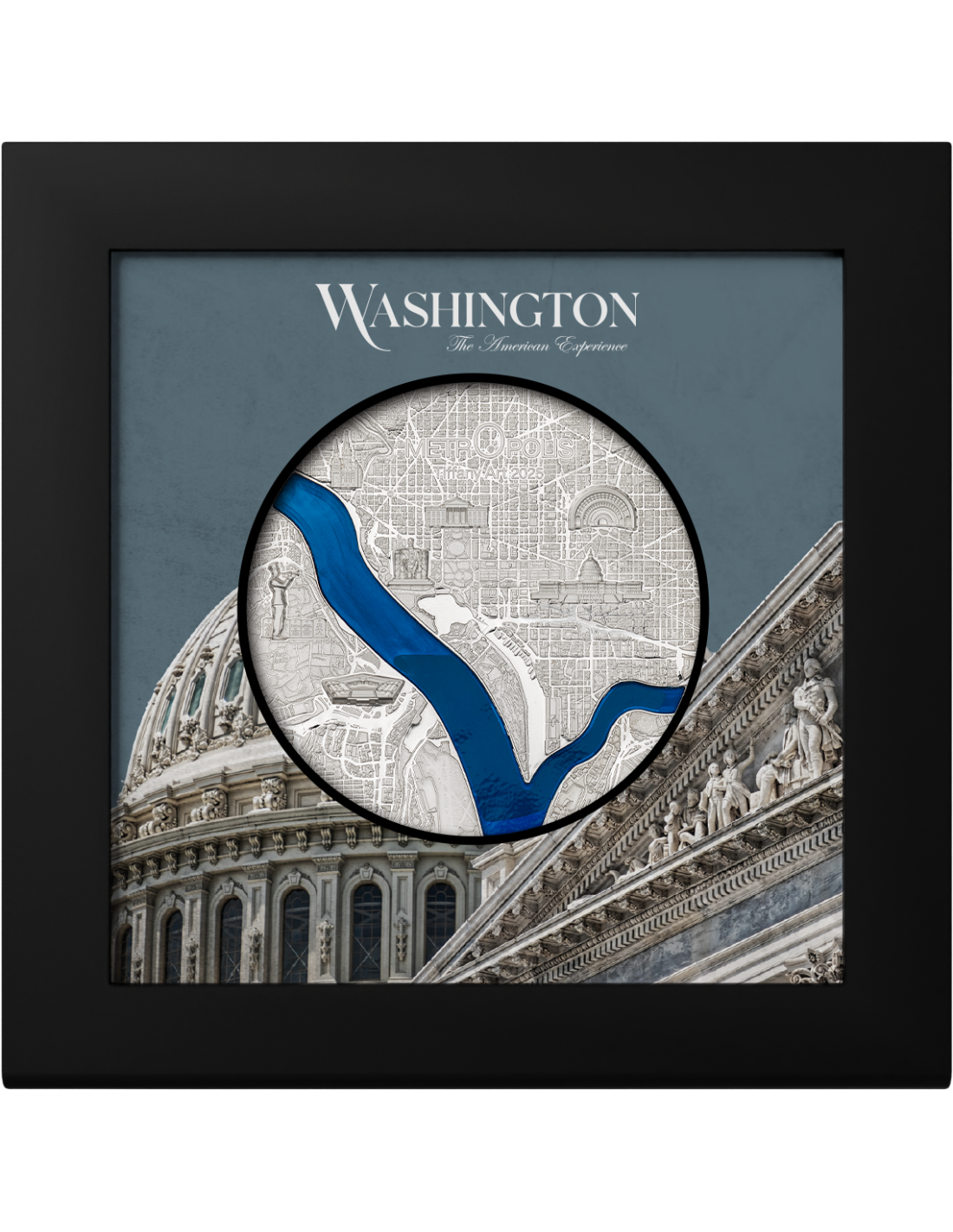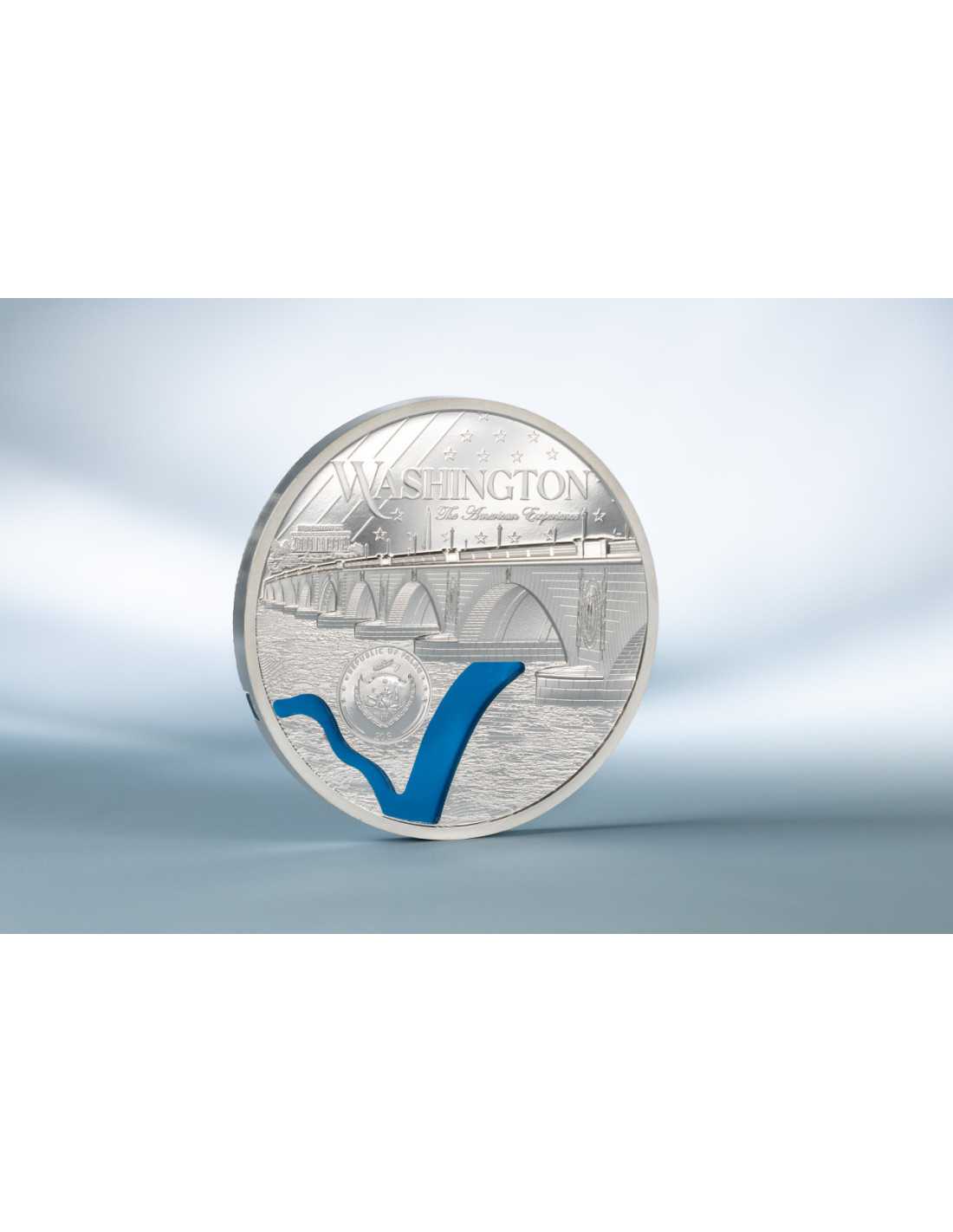 Questa eccezionale moneta d'argento da 3 once fa parte della serie "Tiffany Art Metropolis", che celebra la grandezza architettonica e l'importanza storica di Washington. Caratterizzata da un altorilievo intricato e da un design di grande impatto visivo, questa moneta d'argento è presentata in un elegante cofanetto e accompagnata da un Certificato di Autenticità.